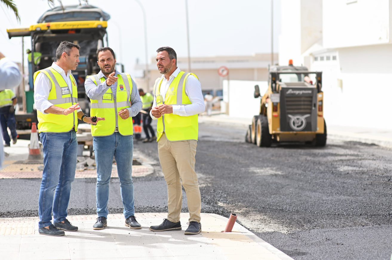 El alcalde Yonathan de León, junto a Oswaldo Betancort y Jacobo Medina visitan las obras de reasfaltado