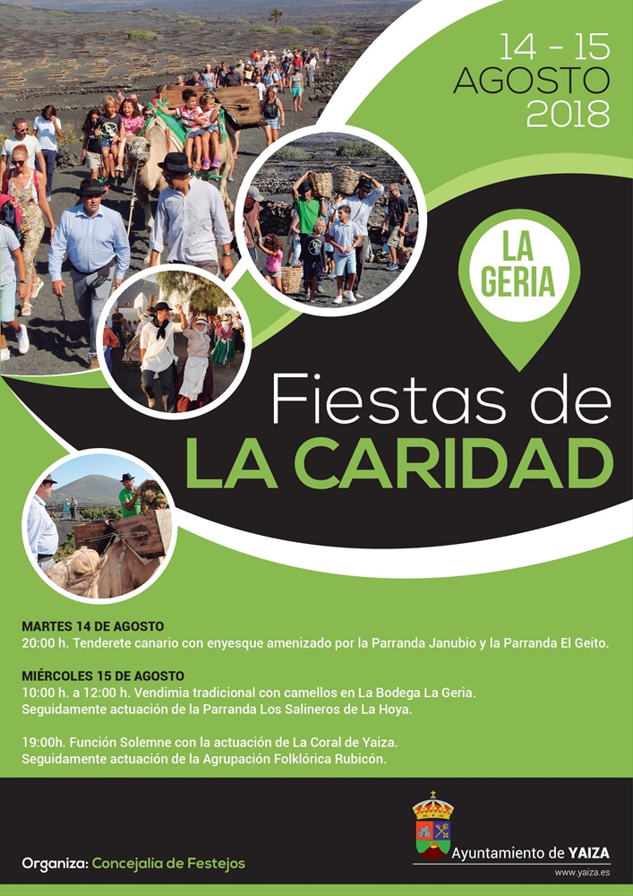La localidad de La Geria celebra los próximos 14 y 15 de agosto sus fiestas en honor a la Virgen de La Caridad, en las que rendirá homenaje al sector vinícola y a los trabajadores del campo.