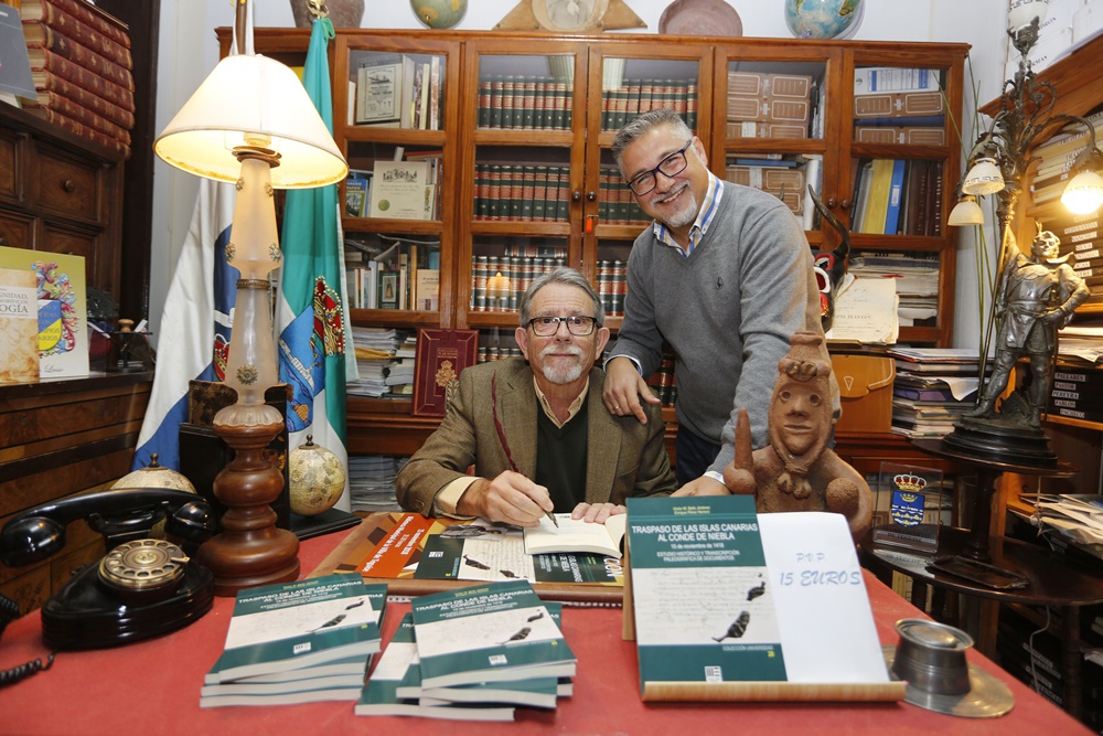 "La edición de Traspaso de las Islas Canarias al Conde de Niebla responde a la necesidad de despejar hipótesis y suposiciones, y también algunas leyendas, y comenzar con un hecho fundamental de nuestra Historia que estamos conmemorando: el traspaso del señorío de Canarias al Conde de Niebla el 15 de noviembre de 1418", explicó Víctor Bello, doctor en Historia de la Universidad de Las Palmas, durante la presentación. Acompañado por Enrique Pérez, Facultativo del Cuerpo de Archiveros del Gobierno de Canarias y Director del Archivo Histórico de Las Palmas, contaron anécdotas de su investigación y de lo descubierto "a la antigua usanza, con una fuerte y determinante apoyatura documental a la hora de demostrar su tesis", tal y como adelanta Germán Santana Pérez en el prólogo del libro de la Colección Universidad de la Editorial Mercurio.