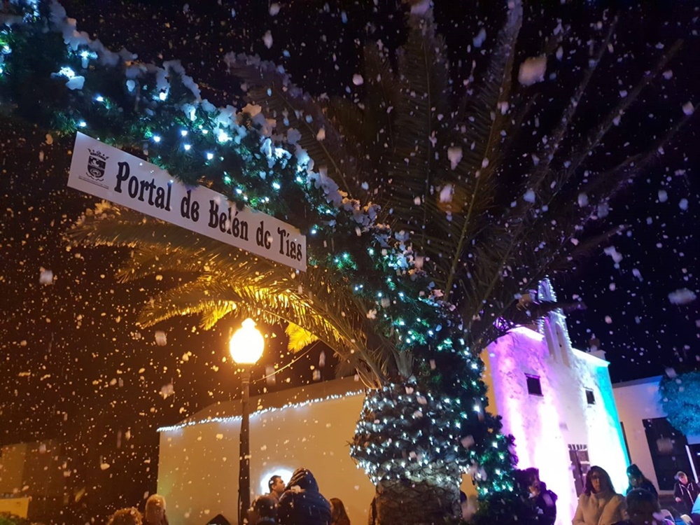 Este año la ambientación navideña de Tías estrena un gran árbol multicolor que se ilumina al compás de conocidas canciones navideñas, y el portal de belén, que en esta edición del 2018 estrena la réplica de la Casa Tienda de Pedro Perico, una de las clásicas tiendas de aceite y vinagre que alimentó a muchas familias del sur de Lanzarote hasta la segunda mitad del pasado siglo XX. El arranque de esta celebración contó con una máquina generadora de nieve artificial que hizo las delicias de los más pequeños al ver, como en esta isla volcánica, la magia de la navidad logra 'hacer nevar' en estas latitudes tropicales. El encendido del belén navideño de Tías contó con la simulación de un volcán en erupción, y un castillo de fuegos artificiales.