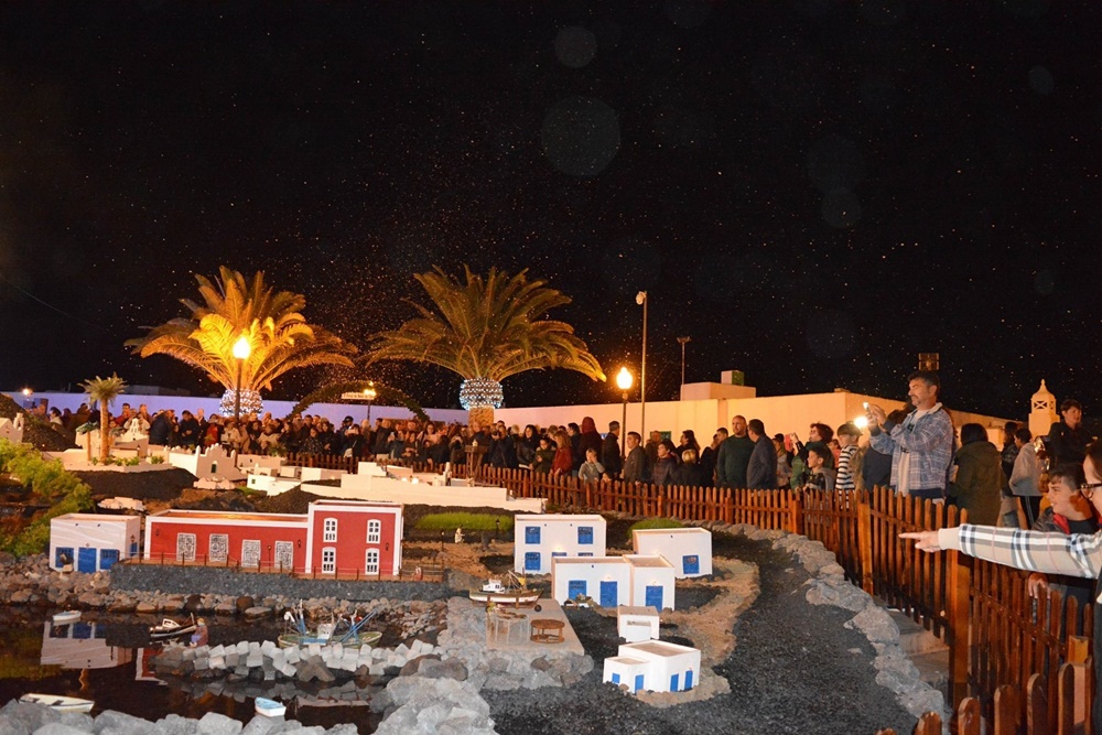 Mientras la bienvenida a la programación navideña en Tías tuvo lugar este pasado sábado, ayer domingo, día 9 de diciembre, se presentó por la noche el nuevo portal navideño de La Tiñosa creado por operarios del Ayuntamiento de Tías, bajo la coordinación del trabajador municipal Luis Acuña. Un belén que recrea el primitivo pueblo de La Tiñosa, en donde nació Puerto del Carmen como zona turística. En este belén, que se instala por segundo año consecutivo, se ambienta la iglesia de La Tiñosa, la Casa Roja, las viviendas de El Poril y las salinas que llegaron a existir en la zona de Matagorda, en el litoral del Puerto del Carmen. La inauguración del Belén de Puerto del Carmen contó con la actuación de la coral y un dúo navideño, y la presencia del alcalde de Tías, el teniente de alcalde y los ediles del grupo de Gobierno. >Un castilo de fuegos artificiales sobre El Fondeadero dio la bienvenida a la Navidad en Puerto del Carmen.
