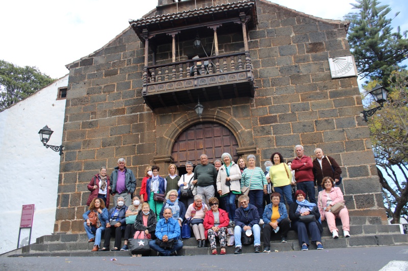Los mayores de Tías visitaron ayer el conjunto histórico-artístico de Santa Cruz de La Palma con paseo por la calle Real y parada en los edificios más representativos, como el Ayuntamiento y la iglesia del Salvador, y en los balcones típicos de la avenida, antes de visitar el santuario de la Virgen de las Nieves.