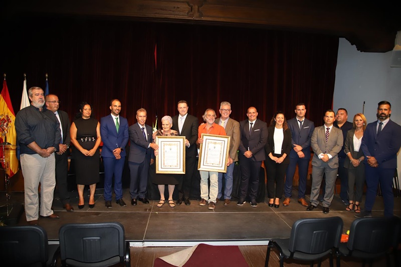 El Ayuntamiento de Yaiza presidido por Óscar Noda celebró este jueves el acto solemne de nombramiento de la poetisa popular del pueblo de Las Breñas Benjamina Marrero Duarte con el título de Hija Predilecta del municipio y del artesano grancanario afincado en Uga desde hace 35 años Agustín Alemán Pérez, 'Tino', con el título de Hijo Adoptivo de Yaiza.