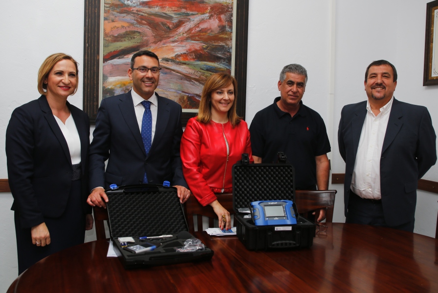 La Consejería de Seguridad del Ejecutivo autónomo ha dotado de diverso equipamiento tecnológico al Ayuntamiento de Teguise. El alcalde, Oswaldo Betancort, acompañado por los responsables de Policía Local y de Emergencias, Miguel Ángel Jiménez y Eugenio Robayna respectivamente, recibió de la mano de la consejera de Política Territorial, Sostenibilidad y Seguridad del Gobierno de Canarias, Nieves Lady Barreto, y de la directora general de Seguridad y Emergencias, Nazaret Díaz, de un nuevo sonómetro para la medición de los niveles de ruido y un drogotest para el control de consumo de sustancias tóxicas.