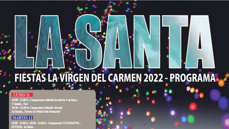 Hoy darán comienzo las actividades del programa con el desarrollo de torneo de fútbol sala en memoria de Juanito Hernández y juegos de mesa infantiles. Además de videojuegos, la semana transcurrirá con campeonatos de fútbol o ping pong entre otros. El fin de semana tendrá lugar la procesión, un asadero popular y la tradicional verbena. Los mayores también podrán disfrutar de bingos con regalos, talleres y manualidades. El resto de eventos podrán consultarse en el programa.
