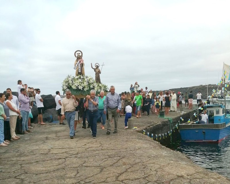Decenas de vecinos de La Santa y del municipio de Tinajo no quisieron perderse la procesión terrestre y marítima de la Vírgen del Carmen, que se celebró este domingo en este pueblo costero del municipio.