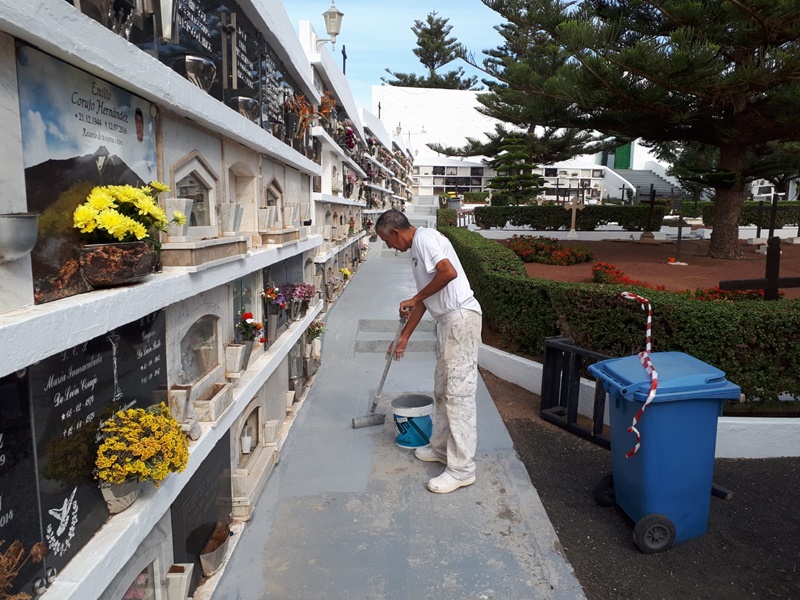 El alcalde, Alexis Tejera señala en un comunicado que: “Entre los trabajos realizados está la pintura, limpieza, mejora de zonas ajardinadas y el remozamiento de los espacios de acceso al camposanto, con una puesta a punto de las instalaciones con vistas a recibir a los cientos de vecinos/as que acudirán a este cementerio municipal en esta tradicional celebración”.