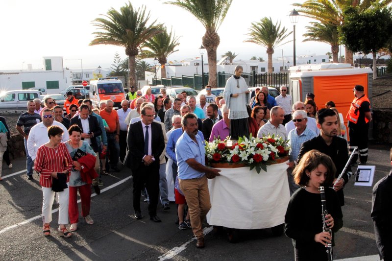 En el andar alrededor de la plaza Víctor Fernández Gopar, los feligreses estuvieron acompañados por el primer teniente de alcalde de Yaiza, Ángel Domínguez, el concejal de Festejos, Javier Camacho, y ediles de la Corporación municipal. Un año más la Agrupación Vocal de Yaiza y la Banda Municipal se sumaron con su buen hacer a la misa y procesión, respectivamente.