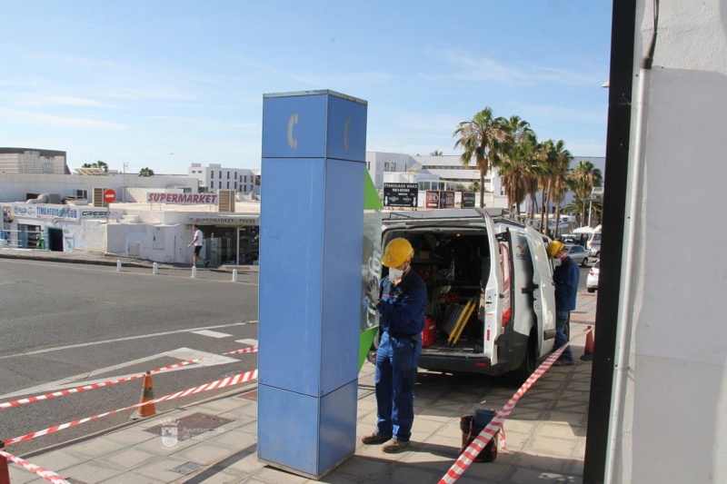 Telefónica España ha dado cumplimiento a la solicitud del Ayuntamiento de Tías para retirar cabinas obsoletas. Esta semana se retiraron una docena de cabinas de teléfono en la Avenida de las Playas, Puerto del Carmen, tras las gestiones realizadas por el consistorio justificando la incidencia negativa en el entorno urbano y su invalidez para las comunicaciones.