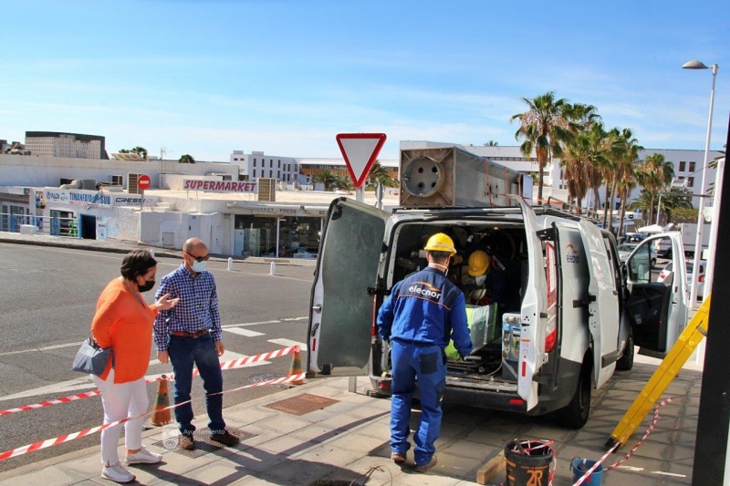 Los concejales de Urbanismo y Comunicación, Ulpiano Calero y Kalinda Pérez, supervisaron la retirada de las cabinas que aún permanecían instaladas en Puerto del Carmen una vez constatado el estado de abandono, la inoperatividad y la ocupación del espacio público.
