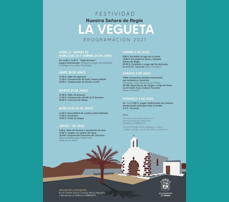 El Ayuntamiento de Tinajo ha preparado una programación para la Festividad de Nuestra Señora de Regla de La Vegueta conforme a las circunstancias actuales que nos rodean.