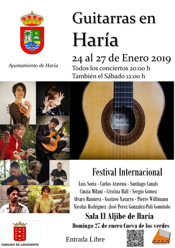 El II Festival Internacional ‘Guitarras en Haría’ pondrá el broche de oro con un concierto de cierre en el Auditorio Cueva de los verdes, en el que participarán Carlos Aravena, Pierre Willimann, Cinzia Milani, Santiago Canals, Poli Gomitotlo, Trío Flamenco, José Pérez González y Luis Soria.