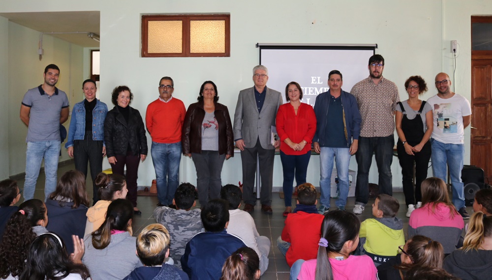 Miembros del equipo de la Productora Segundo B que están realizando el documental sobre la vida de la figura más relevante de la literatura folklórica de Lanzarote, Víctor Fernández Gopar, visitaron nuevamente en la mañana de ayer el CEIP Playa Blanca para compartir con los alumnos que participaron en las grabaciones el trabajo allí realizado.