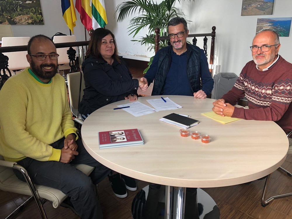 El Ayuntamiento de Haría y el IES Teguise han firmado un convenio de colaboración para que los alumnos de la especialidad FPB Agrojardinería y composiciones florales y PFPA Actividades auxiliares en viveros, jardines y centros de jardinería puedan realizar prácticas vitícolas en la Finca Municipal Agroambiental Los Lajares.