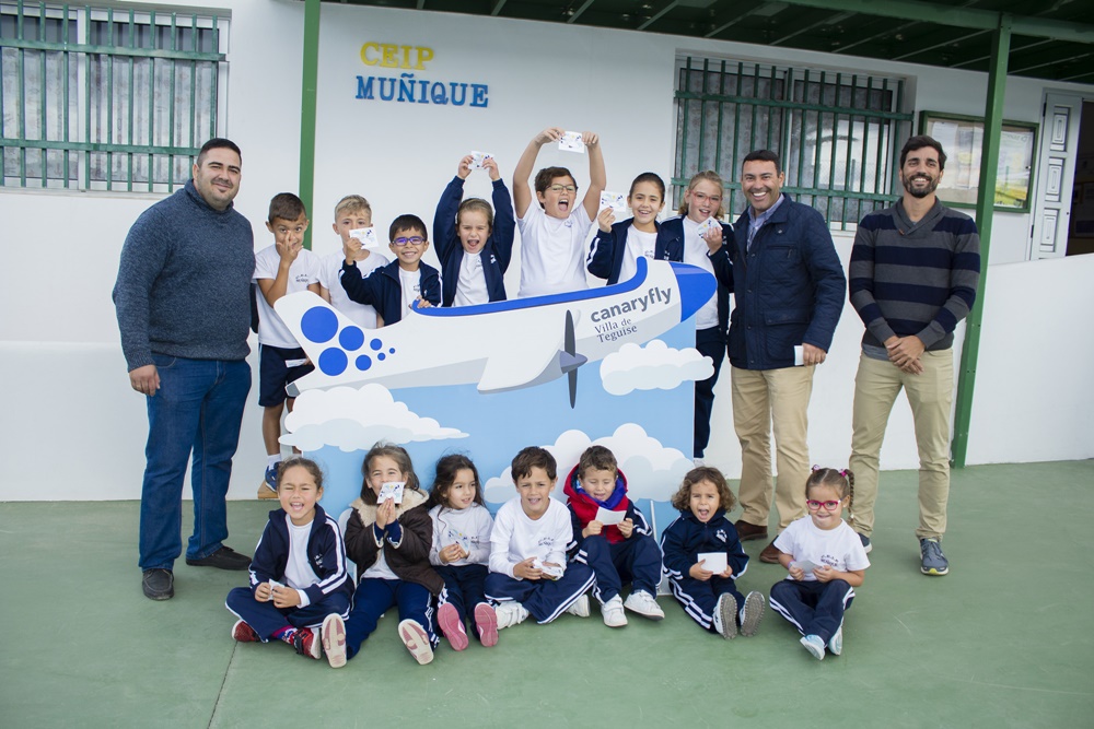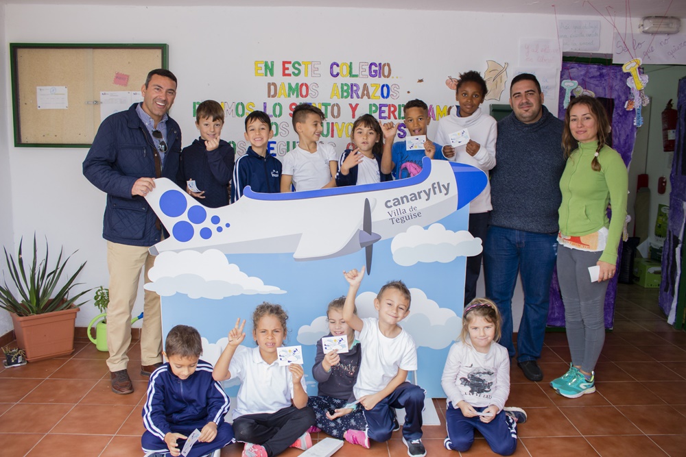 Los niños de los centros escolares del municipio han sido los primeros en "subirse en el avión" de Canaryfly bautizado con el nombre de "Villa de Teguise". Una maqueta de la aeronave ha recorrido los colegios del municipio, donde los niños han realizado su propio diseño.