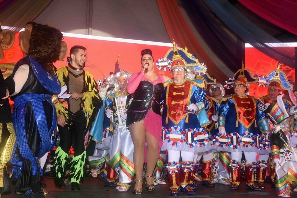 Excepcional puesta en escena de nuestros grupos de Carnaval, en una divertida y amena velada, en la que el color, las coreografías, ingeniosas letras y diseños hicieron brillar en el Parque Félix Rodríguez de la Fuente a la Batucada Guaychara de Ajei con su diseño “Monito, monito, monito”, que puso buen ritmo a la jornada, a Las Revoltosas pioneras del Carnaval por su labor y trabajo todos estos años sobre los escenarios y que una vez más dieron lo mejor de sí ante su incondicional público, luciendo la fantasía del diseñador Manuel Camejo, “Revolución Francesa” y a La Murga Los Retoñitos por su fuerte apuesta carnavalera en escena, con el diseño “Abracadabra”, de Manuel Camejo.