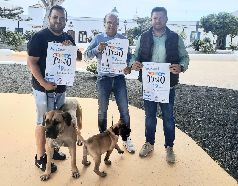 El Ayuntamiento de Tinajo presentó ayer, en la Plaza de San Roque, el concurso de presa canario que se celebrará este domingo, 19 de marzo, en la Plaza de Los Dolores, en Mancha Blanca. Allí es obligatorio hacer entrega de la documentación e inspección veterinaria desde las 9.30. El evento será puntuable para el Campeonato del Club de Presa Canario y para el Campeonato de Canarias y dará comienzo a las 10.30.