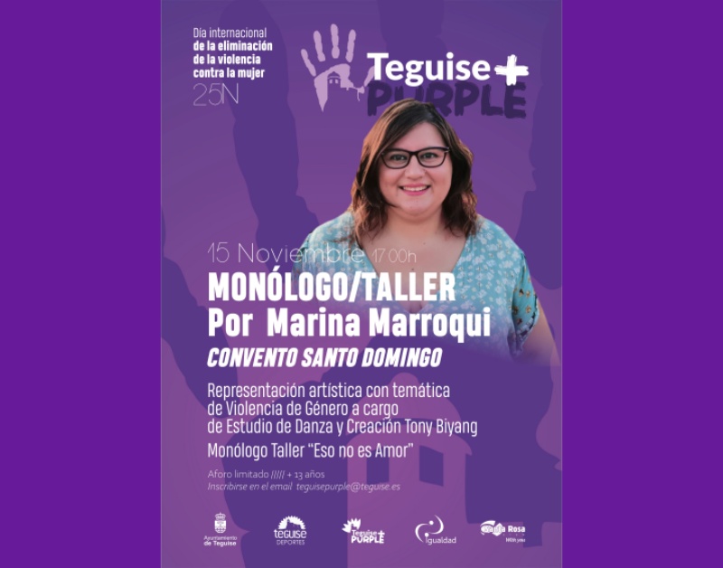 Teguise se une así a la lucha para la eliminación de la violencia contra la mujer, a través de la campaña denominada "Teguise+Purple", diseñada por el área de Igualdad que coordina Isidro Alonso, que además del monólogo/taller, invita a la población a participar en una prueba solidaria y a movilizarse a favor de la concienciación y la igualdad bajo el lema "Haz historia, deja tu huella". La carrera popular de 5 kilómetros en la que podrán