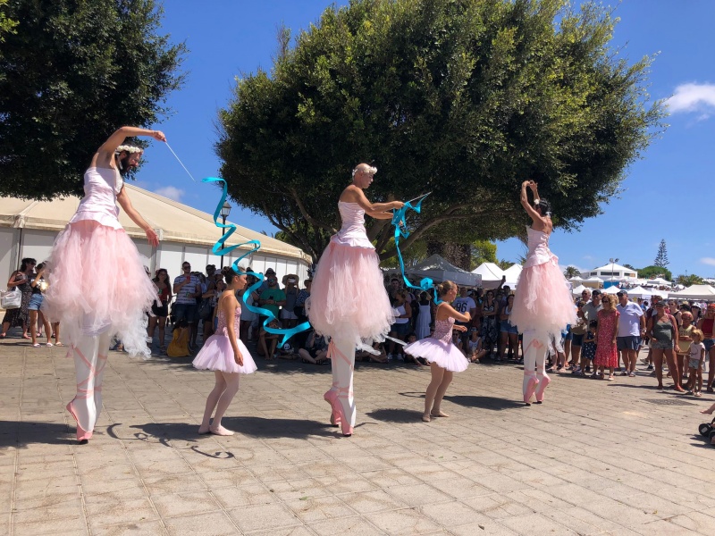 El espectáculo callejero "El paso de los cisnes" sorprendió y amenizó a los miles de personas que visitaron el Conjunto Histórico de la Villa, que recibió durante esta nueva convocatoria dominical del Mercadillo de Teguise a más de 10.000 visitantes.