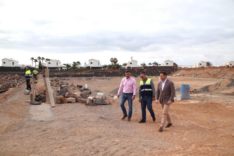 El alcalde de Yaiza, Óscar Noda, y el concejal de Obras Públicas y Deportes, Ángel Lago, visitaron este lunes el área de mil metros cuadrados en Playa Blanca donde el Ayuntamiento construye una cancha deportiva en la zona urbana de Faro Pechiguera invirtiendo 286.000 euros de las cuentas municipales, proyecto que la Institución prevé entregar al servicio ciudadano en un plazo de tres meses, según las estimaciones trasladadas por la dirección de obra a los responsables públicos.