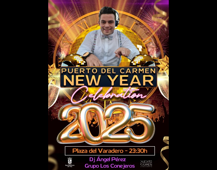 El alcalde de Tías, José Juan Cruz, y el primer teniente de alcalde, Nicolás Saavedra, en nombre de la corporación, invitan a la ciudadanía a participar y disfrutar de la fiesta de fin de año 2024 y bienvenida 2025 que se celebrará el 31 de diciembre desde las 23.30 h hasta las 04:00 h del 1 de enero en la plaza del Varadero, Puerto del Carmen.