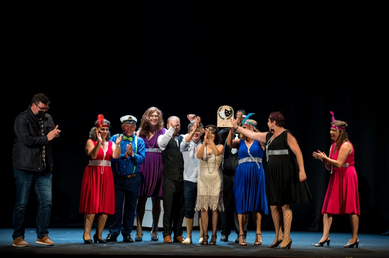 El concejal de Cultura, Isidro Pérez entregó una escultura a Teatreros y Comediantes como recuerdo de su paso por esta fiesta teatral y como agradecimiento por su participación.