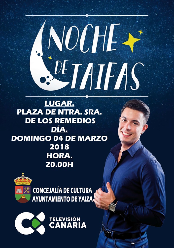 El programa de folklore de TV Canaria, Noche de Taifas, visita nuevamente el sur de Lanzarote por invitación del Ayuntamiento de Yaiza para grabar en la Plaza de Los Remedios el próximo domingo 4 de marzo a partir de las 20:00 horas. El concejal de Cultura de Yaiza, Daniel Medina, convoca a las familias del municipio y al pueblo de Lanzarote a participar de esta exitosa producción televisiva que ensalza la música de las Islas y los valores del municipio anfitrión.