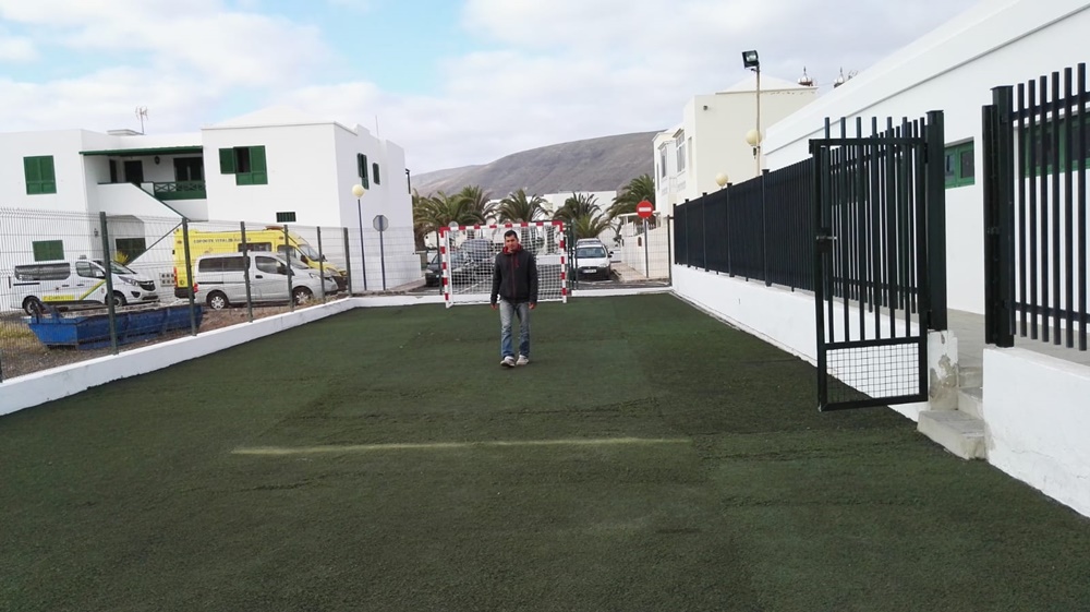 El Ayuntamiento de Haría ha habilitado una nueva cancha de futbito en el CEIP La Garita de Arrieta, aprovechando el espacio dejado por las aulas modulares retiradas, dotándola de un vallado y de césped.