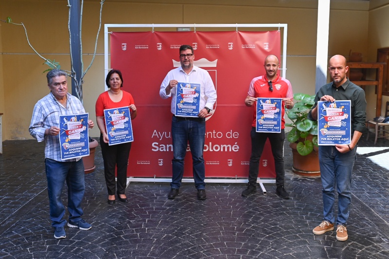El Ayuntamiento de San Bartolomé en la mañana de hoy presentó junto al San Bartolomé C.F. la campaña “Rasca, juega y gana”, en colaboración con comercios locales del municipio, estando abierta la campaña a la participación de más establecimientos del municipio que quieran adherirse.