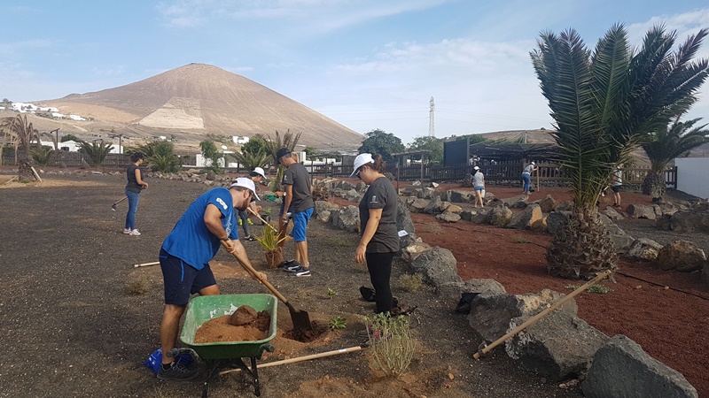 Estos voluntarios, que ya participaron el pasado año a través de la Fundación Altadis, en las tareas de limpieza del litoral de Puerto del Carmen, han regresado este año nuevamente a la isla, y a petición de la Concejalía de Juventud del Ayuntamiento de Tías, bajo la dirección de la edil Nerea Santana, este año los trabajos de responsabilidad social corporativa de este grupo se ha centrado en la reforestación con especies autóctonas de las zonas verdes del albergue y el merendero de Tegoyo. Con la colaboración del Vivero del Cabildo de Lanzarote se han plantado 30 ejemplares de tabaibas, 7 dragos, doce bejeques, cinco higueras y 3 morales.