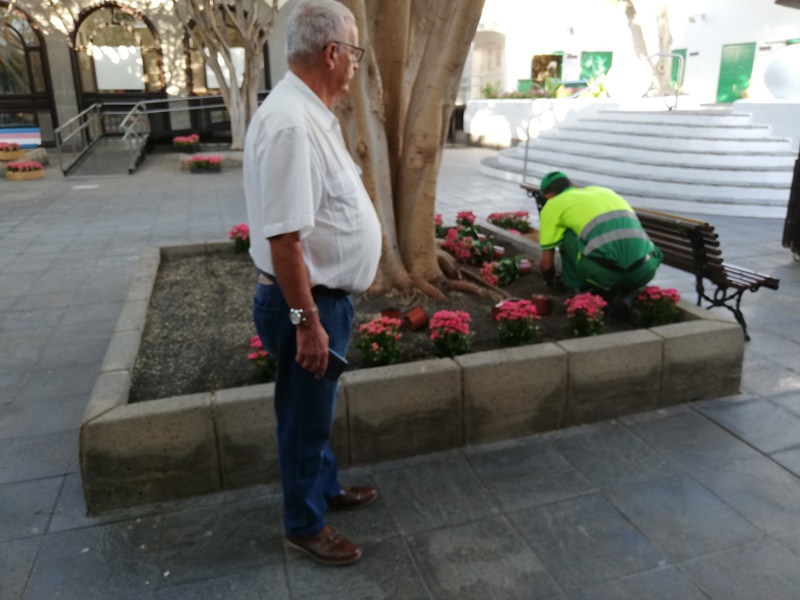 La Concejalía de Parques y Jardines del Ayuntamiento de Arrecife ha decidido plantar varias especies en la Recova Municipal para dar colorido y un mejor aspecto de cara a los actos de las fiestas de San Ginés 2019.