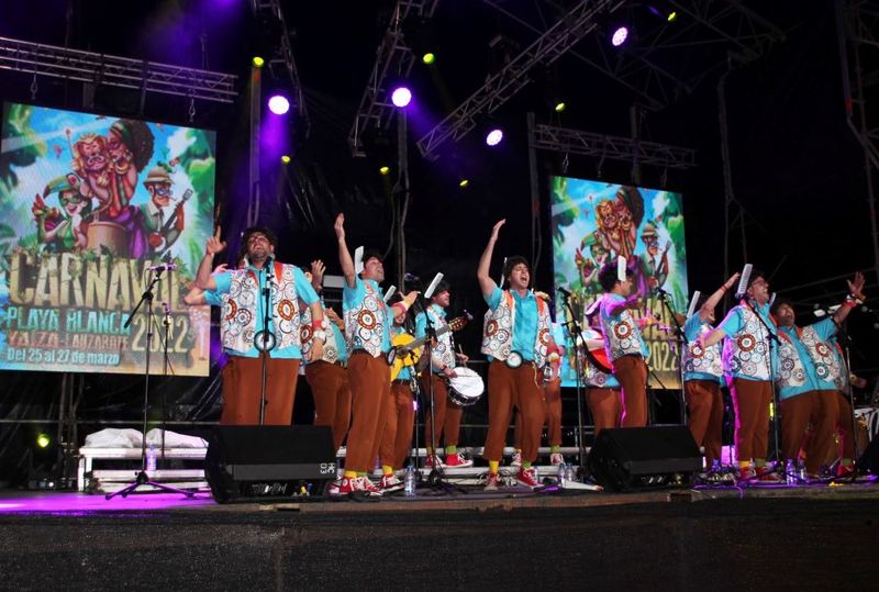 Conexión total este viernes del público sureño con los grupos artísticos invitados al Encuentro de Murgas y Chirigotas organizado por el Ayuntamiento de Yaiza con motivo de la celebración del Carnaval de la localidad turística de Playa Blanca, donde actuaron las murgas lanzaroteñas ‘Las Vacilonas’ y ‘Los Simplones’, la murga de la isla hermana de Fuerteventura, ‘Los Gambusinos’, que acaba de ganar en el Carnaval de Las Palmas de Gran Canaria, y las chirigotas ‘Los Lilones’ y ‘No aguanto más, vamos de impacientes’, segundo puesto en el Carnaval de Cádiz de 2020, cartel de lujo que redondeó un espectáculo con nota sobresaliente.