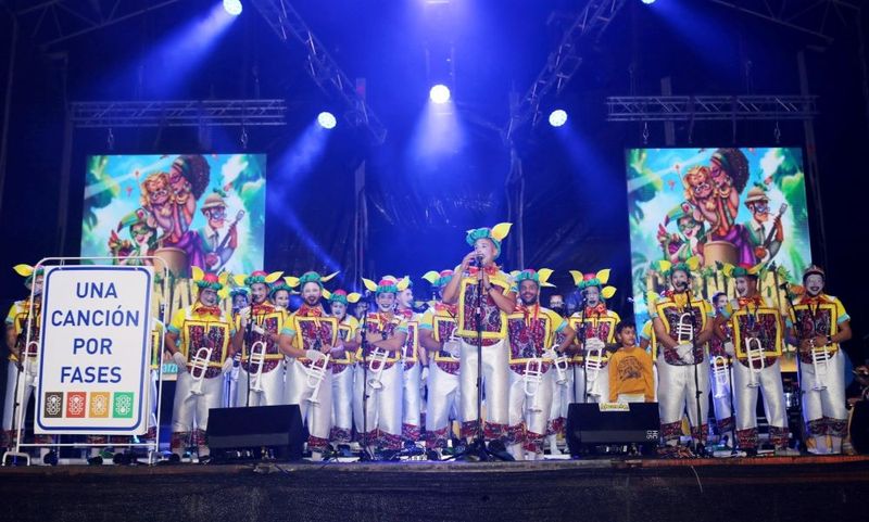 No son solo letras, es la música de percusión en las murgas y también de cuerdas en la chirigota, y la expresión no verbal de los artistas la que imprime alegría al espectáculo. Los chicos invitados de Cádiz interpretaron pasodoble, cuplé y popurrí, en estos últimos cambiando ingeniosamente las letras de canciones populares muy pegadas.