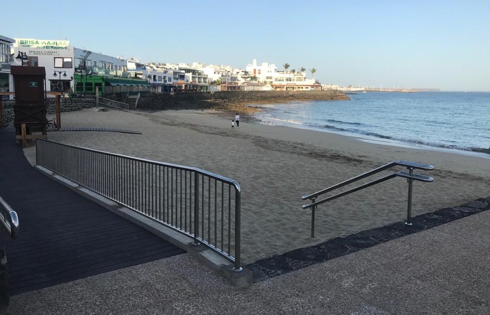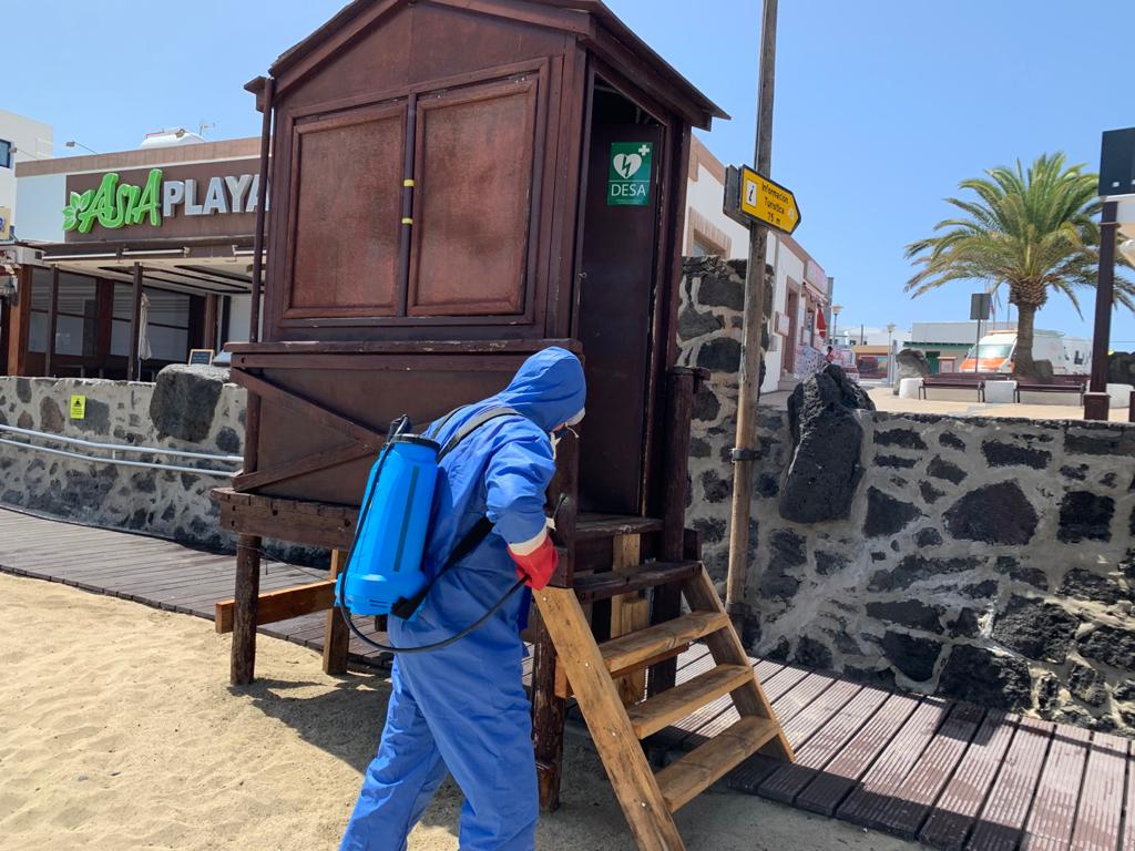 En la playa de Playa Blanca ya habían finalizado las obras de mejoras y accesibilidad y este domingo se realizaron trabajos de desinfección. Las playas abiertas al baño no solo deben garantizar las medidas recomendadas por las autoridades sanitarias para evitar la posible propagación del covid-19, sino que también deben garantizar la seguridad de los bañistas, dando por descontado la responsabilidad individual de los usuarios en el cumplimiento de las medidas, entre ellas, la distancia interpersonal de dos metros tanto en la arena como en el agua, excepto para el caso de miembros de familias convivientes.