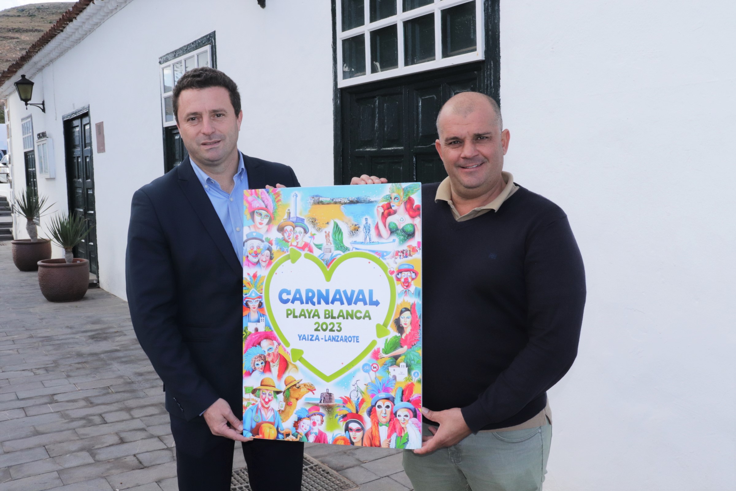 La localidad turística de Playa Blanca promociona sus fiestas carnavaleras 2023 previstas del jueves 16 al domingo 19 de marzo, descubriendo desde ya la imagen de este esperado jolgorio colectivo inspirado en el medioambiente, de allí que el cartel ganador del concurso municipal plasme mensajes gráficos relevantes sobre el cuidado del planeta conservando el colorido de la alegre celebración, cuyo diseño es autoría del ilustrador Rubén Lucas García, que recibe los 1.500 euros establecidos en las bases de la convocatoria publicada por el Ayuntamiento de Yaiza en octubre pasado.