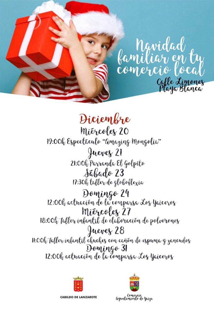 Pero Playa Blanca calienta motores ya desde hoy, 20 de diciembre, con una intensa programación navideña, organizada por el Ayuntamiento que dirige Gladys Acuña, que llenará de ambiente la calle Limones con espectáculos, talleres infantiles y actuaciones musicales. A las 19.00 horas, llega el espectáculo de acrobacias y contorsionismo 'Amazing Mongolia', con originales números que dejarán boquiabiertos a grandes y pequeños. Seguidamente, a las 20.30 horas, la Agrupación Folklórica Timbayba ofrecerá su repertorio navideño.