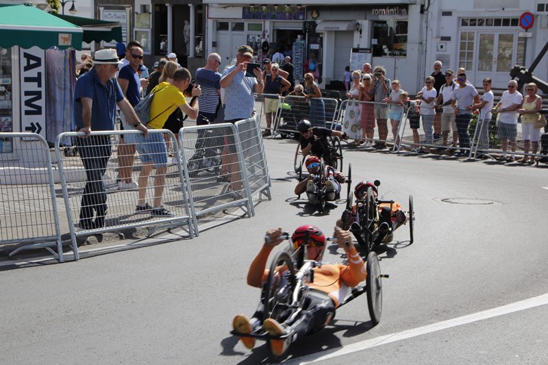 La prueba del sábado en Playa Blanca consistía en completar el mayor número de vueltas en 45 minutos por el circuito sureño de 2,2 kilómetros. La dirección de carrera dividió los handbikers en dos grupos de salida con reto idéntico de tiempo y distancia. Jonas Van de Steene, del grupo de la primera salida, volvió a ganar completando un total de 15 vueltas y consiguiendo su mejor tiempo por vuelta, de 3:21 min, justo en su primer giro.