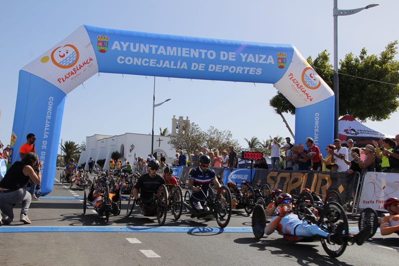 La Vuelta a Playa Blanca en Handbike se escribe en mayúsculas con F de fuerza y V de velocidad, aunque viviendo de cerca el espectáculo que desde hace más de una década ofrecen grandes protagonistas del deporte adaptado en el sur de Lanzarote, bien podríamos hacer interminable la lista de atributos.