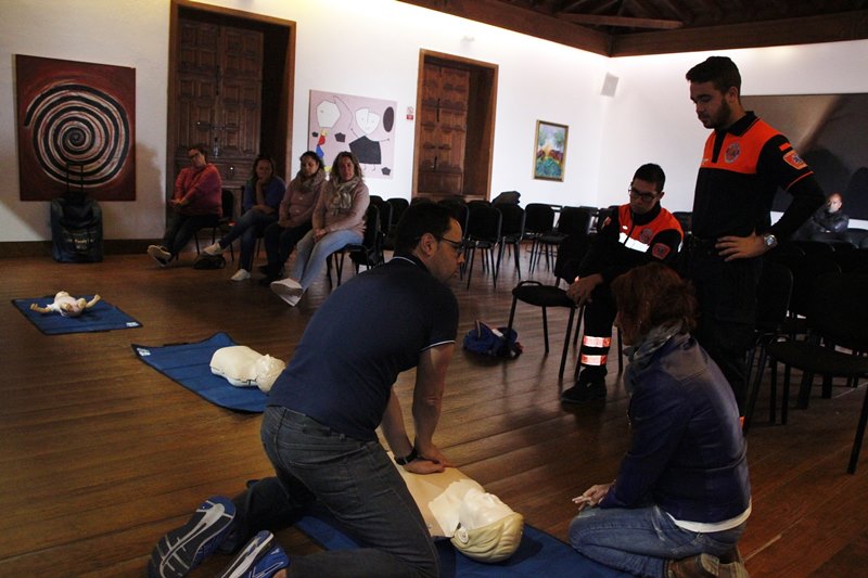 Tal y como lo adelantaba el concejal de Seguridad Ciudadana del Ayuntamiento de Yaiza, Javier Camacho, la Agrupación de Protección Civil del municipio desarrolla ya la iniciativa de instruir en cursos reducidos de ocho personas a monitores de distintas áreas de la Institución, especialmente a aquellos que trabajan a diario atendiendo a personas adultas y mayores como es el caso del personal de Servicios Sociales y de Dinamización Social que este sábado recibieron formación sobre maniobras de soporte vital básico y manejo del desfibrilador externo semiautomático en una jornada completa de teoría y práctica.