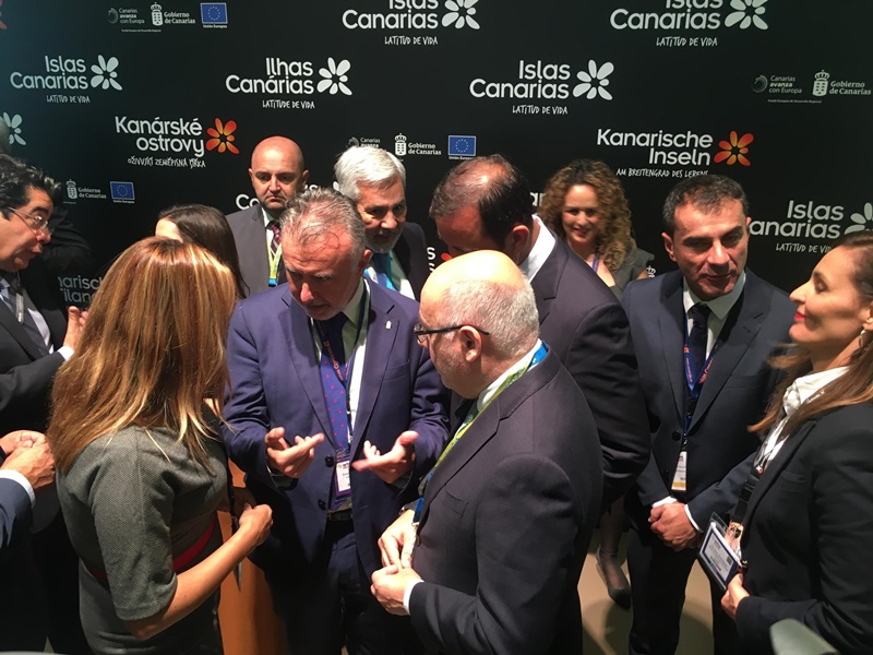 La representación canaria tuvo la oportunidad de hablar con la ministra de Turismo, Reyes Maroto, y con la secretaria de Estado de Turismo, Biel Oliver.