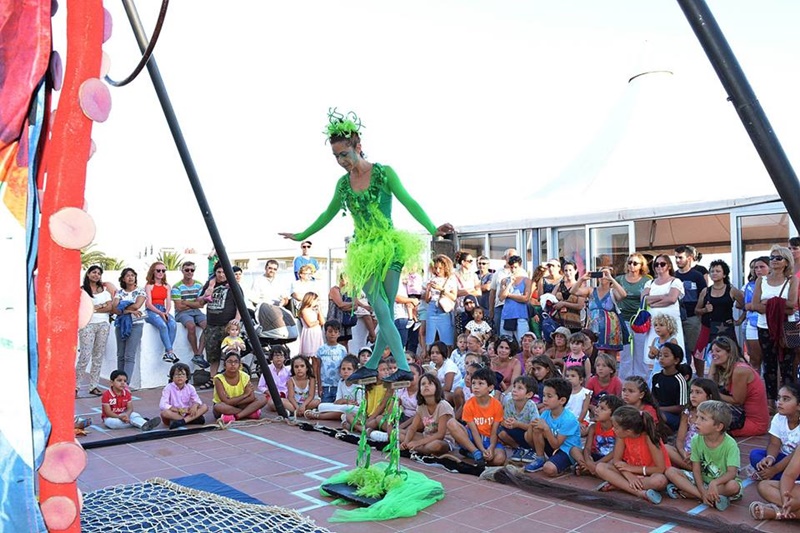 Una de las propuestas culturales con las que el Ayuntamiento de Tías ha innovado en la programación de las fiestas de Puerto del Carmen, en este 2018, ha permitido llenar de ambiente las callejuelas interiores de La Tiñosa y la plaza interior de El Fondeadero. En la tarde del jueves la propuesta cultural "Callejeando por el fondo del mar" , con un circo teatro familiar, logró la risa, diversión y entretenimiento de niños y adultos. La compañía Delirantes trajo a La Tiñosa el buen teatro callejero.