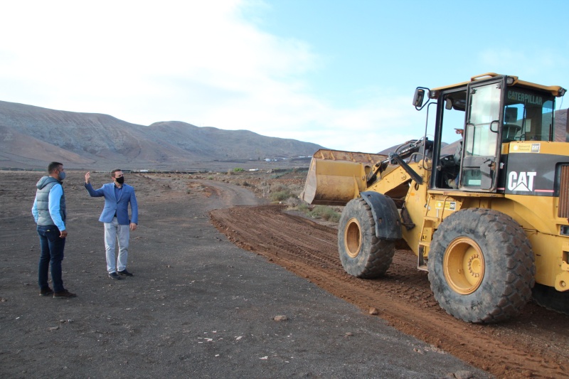 El Ayuntamiento de Yaiza realiza trabajos de acondicionamiento de caminos agrícolas localizados en término municipal con una primera actuación en el pueblo de La Degollada, en el camino Caldereta, visitado este lunes por el alcalde de Yaiza, Óscar Noda, y el concejal de Sector Primario, Emilio Machín, quienes confirman sucesivas encomiendas en los caminos de Tinasoria, Morro de Uga y Temuime.