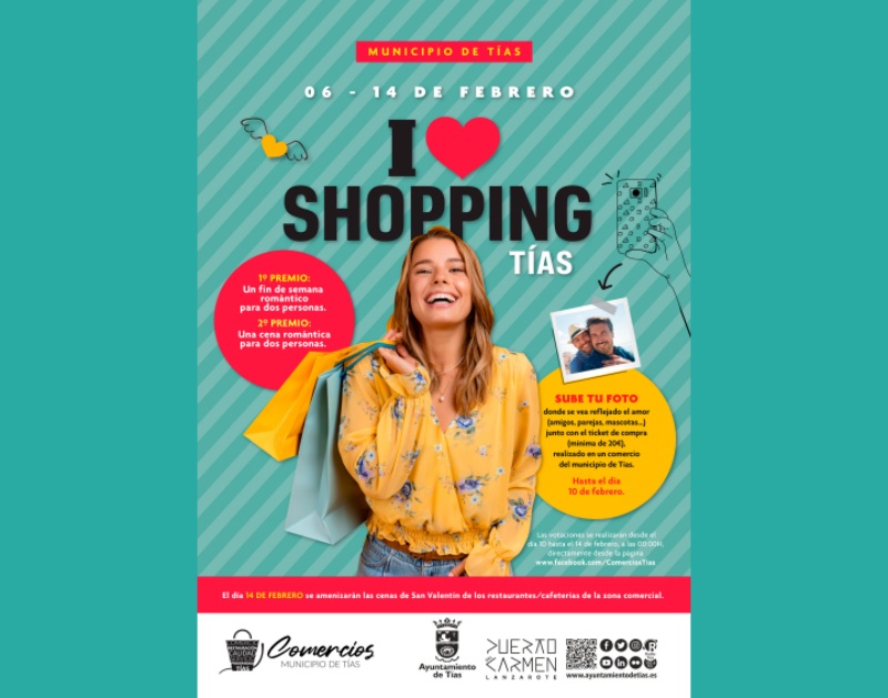"I love shopping Tías" es la denominación de la nueva campaña de dinamización comercial impulsada por el Ayuntamiento de Tías para reforzar las áreas de compra y consumo de servicios del municipio. El consistorio anima a consumir en los establecimientos de proximidad y participar en esta campaña con fotos y premios.