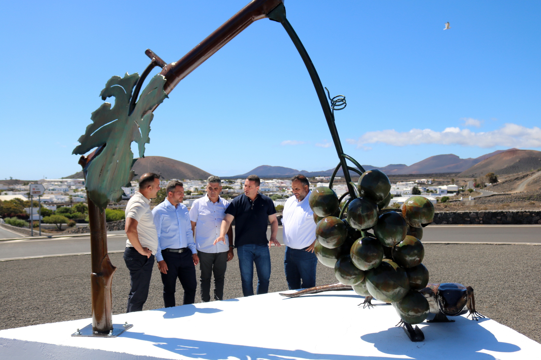 “Ha sido un trabajo brillante y hecha a contrarreloj”, felicitaba el concejal del Obras Públicas de Yaiza, Ángel Lago, a su autor Isidro Viñoly, al tiempo que agradecía al Cabildo “el haber trabajado mano a mano para poder obtener a tiempo las autorizaciones pertinentes” y a los trabajadores municipales que se han encargado de su instalación “por la rápida actuación para adecuar la rotonda, la colocación del rofe nuevo y la base hormigón, porque han hecho posible que hoy sea un día especial, al poder inaugurar esta preciosa escultura de forma previa al inicio de una carrera tan nuestra como es la Wine Run”.