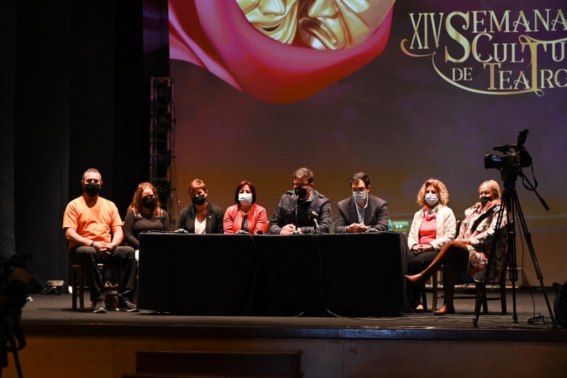 Representantes de las agrupaciones teatrales con presencia en esta cita cultural Nova Kirkpatrick (Compañía Teatral Chespir), Juana Saavedra (Grupo de Teatro Ajei), Almudena Moreno (Comi-k Teatro), Germán Barros (Raíces del pueblo) y Esther Vazquez (Somos), animaron a la ciudadanía a participar, a disfrutar con las propuestas teatrales que mostrarán en estos días y agradecieron la apuesta municipal por mantener viva la llama del teatro en el municipio de San Bartolomé.