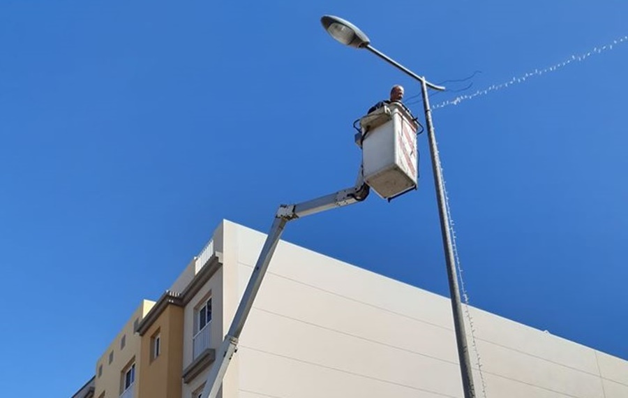 Desde este lunes, 11 de noviembre, los operarios de la empresa adjudicataria, están procediendo a la instalación de las luces navideñas. Dos furgonetas grúas, con varias cuadrillas, realizarán en estas semanas de noviembre este montaje. Los trabajos han arrancado por el barrio de Altavista, y la zona de la Playa del Reducto.