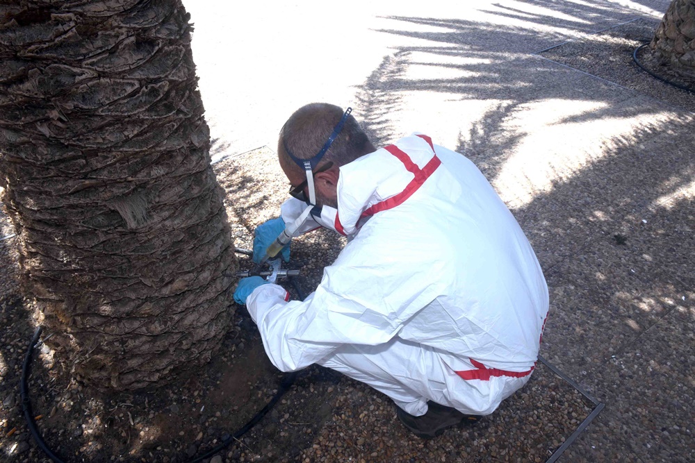 San Bartolomé aplica el tratamiento de endoterapia a las palmeras