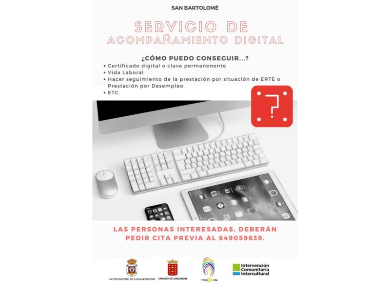 Muchos de los trámites administrativos que la ciudadanía debe hacer con la Administración Pública solo se pueden hacer vía telemática. Es por ello que desde el Ayuntamiento de San Bartolomé se pone en marcha un servicio que facilite, asesore y acompañe en la realización de los mismos, señala el alcalde, Alexis Tejera. Por lo que si quieres tener tu clave permanente, certificado digital, hacer un seguimiento de tu ERTE o Prestación por Desempleo, solicitar tu vida laboral, etc., llama al 649059639 y te daremos cita presencial.