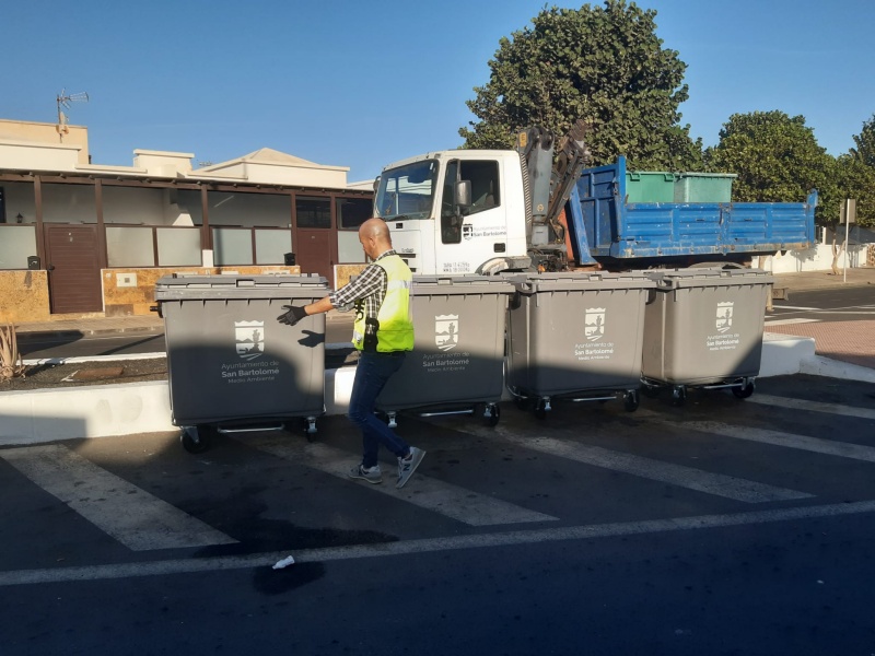 El Ayuntamiento de San Bartolomé continúa avanzando en su apuesta por un municipio más limpio y sostenible con la instalación en Playa Honda de 269 nuevos contenedores para basura orgánica con pedal incorporado.