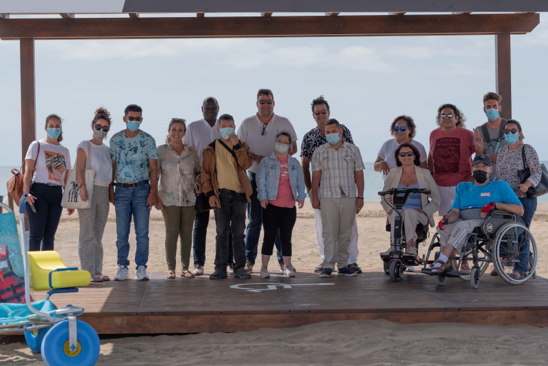 El alcalde, Isidro Pérez, acompañado por el concejal del Seguridad, Mamadou Yero Sy Cisse, responsables del REN, y representantes de las asociaciones Tinguafaya, Creciendo Yaiza, ADISLAN y Asociación de Juristas con discapacidad de Lanzarote, visitaron este miércoles la nueva zona de sombra y mejoras realizadas en las playas del municipio.